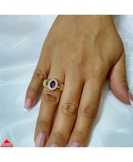 Кольцо Jessica выполненное из золота 585-й пробы, жёлтого оттенка. В овальной форме вставки аметист, нежно сиреневого цвета. По кругу россыпь циркония, ширина кольца 8 мм. Изюминка изделия в его гибкой текстуре. Такой аксессуар сделает Ваш образ более мягким и изящным.