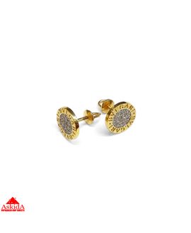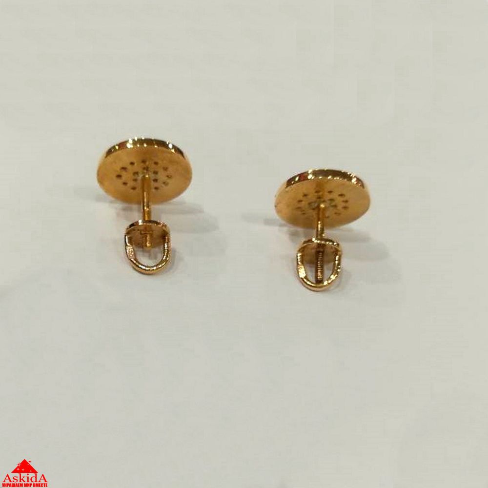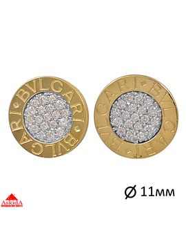 Аккуратные, стильные серьги-пусеты. Изготовлены из золота 585 пробы и украшены фианитами. Диаметр: 11 мм