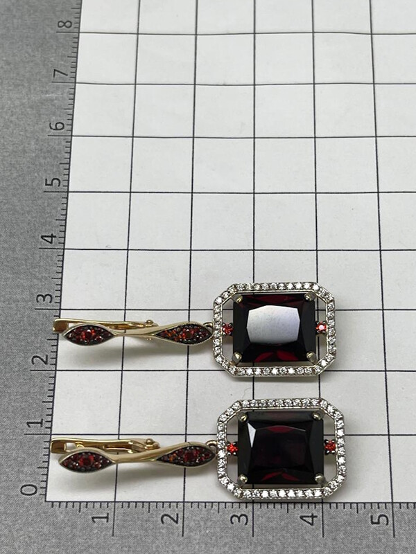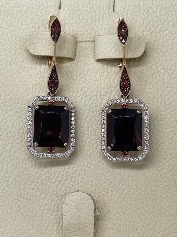 Серьги золотые с гранатом и фианитами