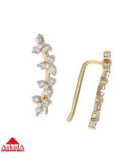 Серьги каффы выполнены из золота 585 пробы и украшены фианитами инкрустация которых напоминает цветок.