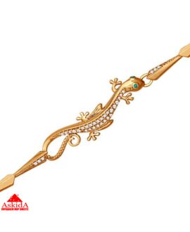 Серебряный позолоченный браслет с фианитами. Ширина в самой широкой части 8 мм. Зеленые фианиты на позолоченной серебряной ящерице! Этот серебряный браслет с позолотой, браслет ящерица, будет отлично смотреться на Вашей руке, и привлекать внимание к каждому ее движению.