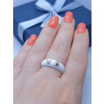 Белый цвет всегда в моде - ведь это классический цвет. Белое керамическое кольцо носить можно практически с любой одеждой. Это украшение подойдёт не только в качестве каждодневного аксессуара, но и будет великолепно гармонировать с вечерним платьем. Изюминку керамическому колечку добавляет небольшая вставка из двух золотых сердец с настоящими бриллиантами. На пальчике смотрится чудесно, очень нарядно и необычно.