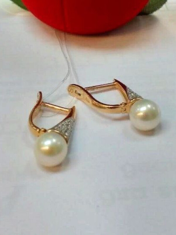 Серьги золотые с жемчугом и фианитами