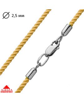 Шнурок шелковый золотистый с серебряным замком - 2,5мм