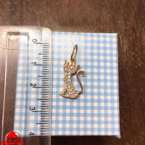 Подвес кошечка изготовлен из красного золота 585 пробы и усыпан прозрачными сияющими фианитами. Кошка символизирует хитроумие, ясновидение, способность перевоплощаться, гибкость и женскую изящность.