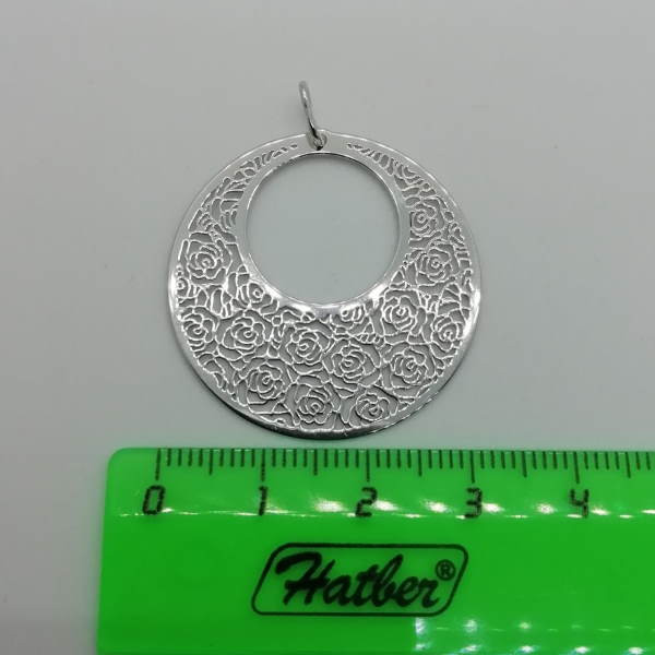 Ажурная подвеска "Кружево" выполнена из серебра 925 пробы. Дополнительно покрыта защитным слоем родия, который придает украшению благородный стальной оттенок и выразительный блеск! Несмотря на то, что подвес имеет диаметр круга 32 мм, смотрится он очень легко и воздушно, благодаря тончайшему кружеву в виде роз! И отлично дополнит любой Ваш летний образ! Подвес имеет не большой вес (всего 1.5 гр) и будет прекрасно смотреться на не широкой серебряной цепи плетения Сингапур, Якорь, Нонна!