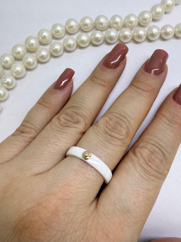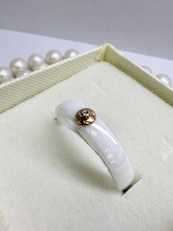 Керамическое кольцо с бриллиантом и золотом