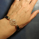 Браслет с круглой вставкой ДЕРЕВО ЖИЗНИ, кожа с серебром