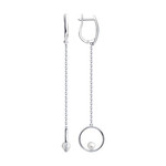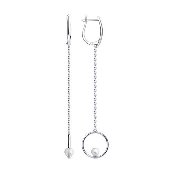 Серебряные серьги цепочка с подвесками кольцо с жемчужиной и английским замочком - Sokolov
