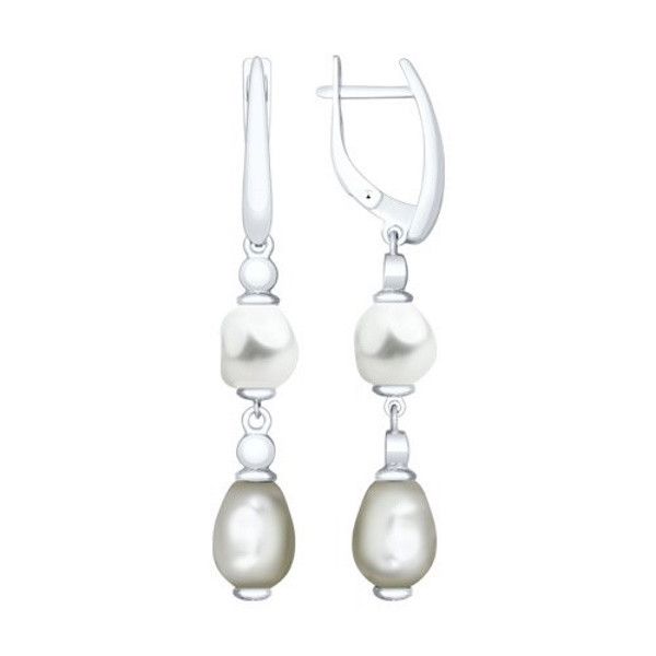 Серебряные серьги с подвесками из белого и серого жемчуга на английском замочке - Sokolov
