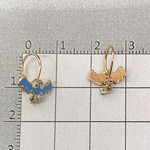 Серьги выполнены из красного золота 585 пробы. Инкрустированы прозрачными фианитами и голубо-белой эмалью. Обладают оригинальным дизайном. Лёгкое, аккуратное, оригинальное и очень яркое украшение. На ушах смотрятся нежно и лаконично. Превосходный подарок маленькой принцессе по-любому случаю.