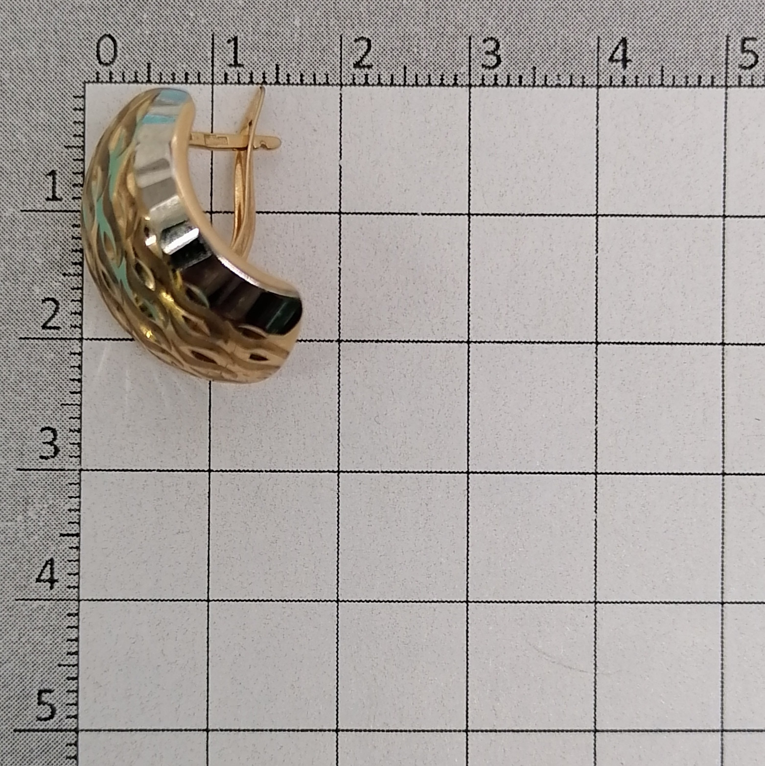 Серьги объемные с рисунком из комбинированного золота