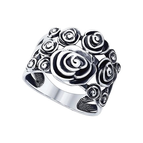 Серебряное широкое кольцо с чернением / цветочная композиция - Sokolov