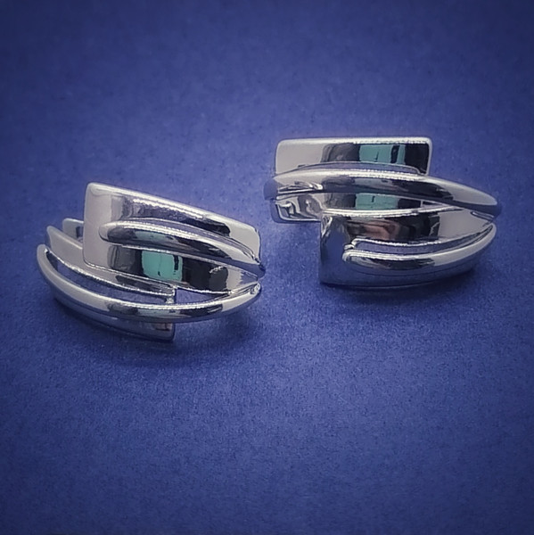 Серьги выполнены из родированного серебра 925 пробы. Вставок не имеют. Изделие обладает оригинальным дизайном с прорезями. Красивое, универсальное и очень элегантное украшение, которое сочетается с любым стилем одежды. Превосходный подарок девушке/женщине на День Рождение.