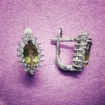 Серьги из серебра с овальным султанитом и фианитами