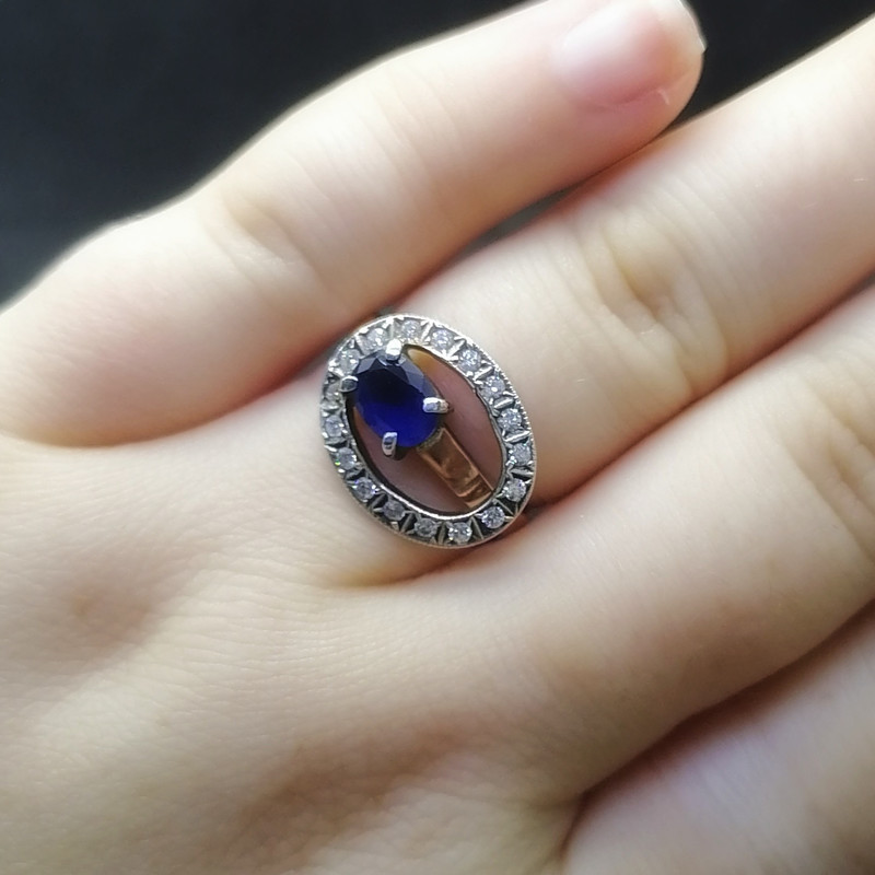 Кольцо из серебра с золотыми накладками, Сапфиром и Фианитами