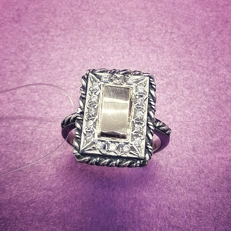 Кольцо выполнено из серебра 925 пробы. Инкрустировано прозрачными фианитами. Объёмное, шикарное, изысканное и очень модное изделие. Подходит к любому стилю одежды. Можно использовать в комплекте с другими изделиями. Превосходный подарок девушке/женщине на День Рождение.