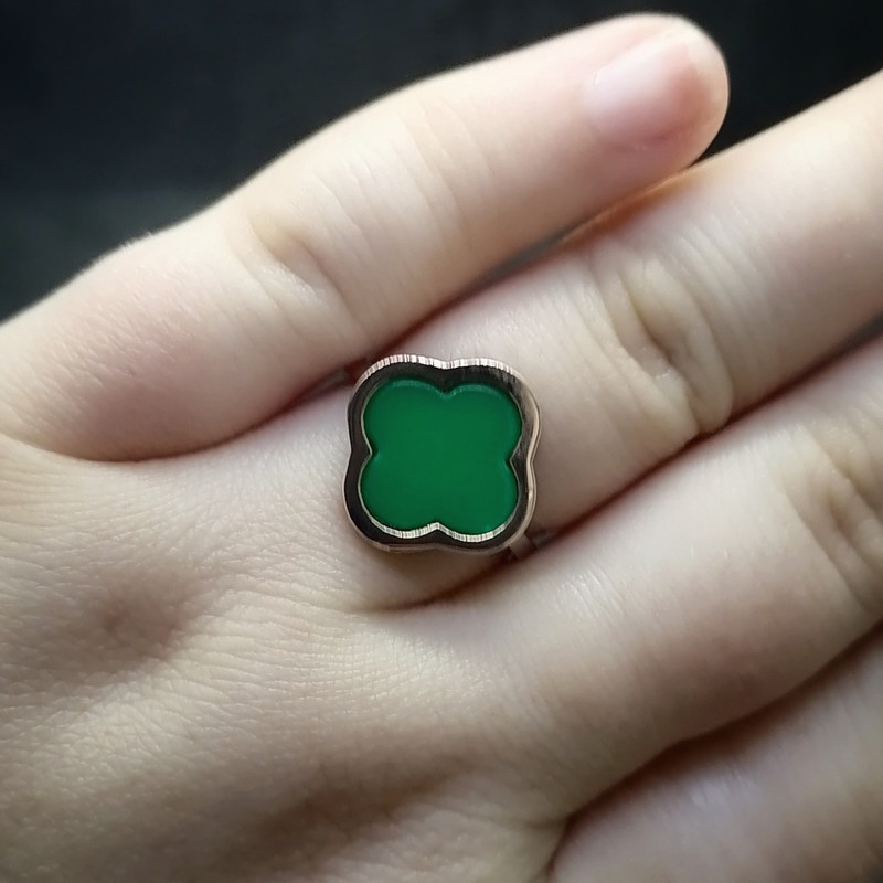 Кольцо "Зеленый клевер" из серебра с золотыми накладками и эмалью