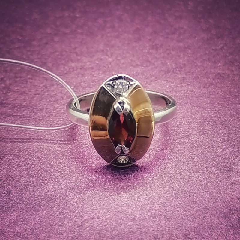 Серебряное кольцо с золотыми накладками, Гранатом и Фианитами