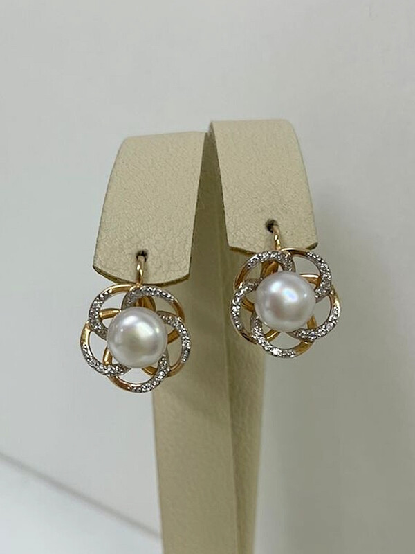 Изысканные серьги из красного золота с жемчугом и фианитами