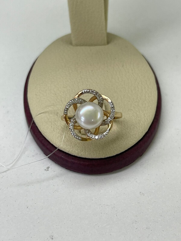 Кольцо в форме цветочка из красного золота с Жемчугом и Фианитами