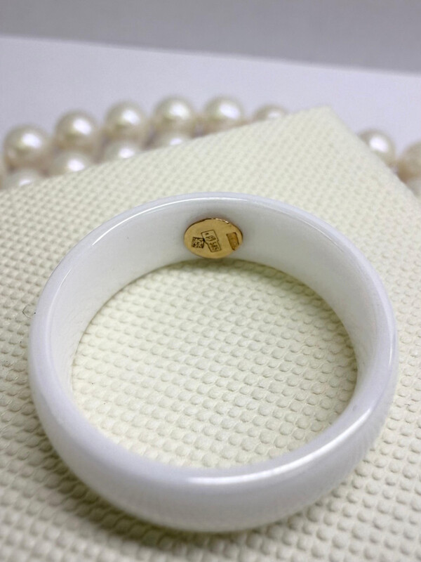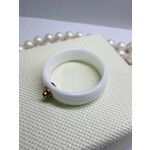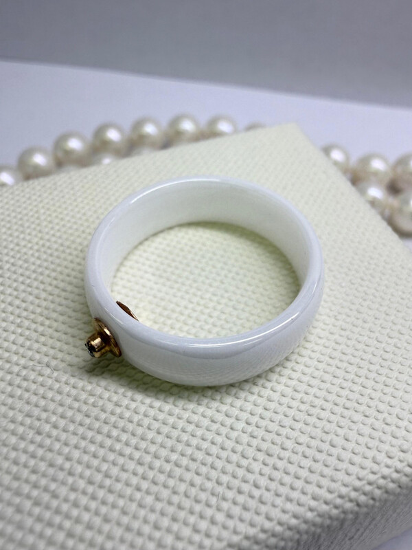 Кольцо выполнено из белой керамики. Ширина кольца 6 мм. Вставкой служат золото 585 пробы и прозрачный бриллиант в 0.011 карат с огранкой 57 фацетов. Утонченная и очень стильная модель. На руке сидит просто превосходно. За счёт того, что керамика очень гладкая, изделие очень комфортно в носке. Поможет своей обладательнице расставить акценты в повседневном, деловом и вечернем образе. Придаёт ему изюминку.