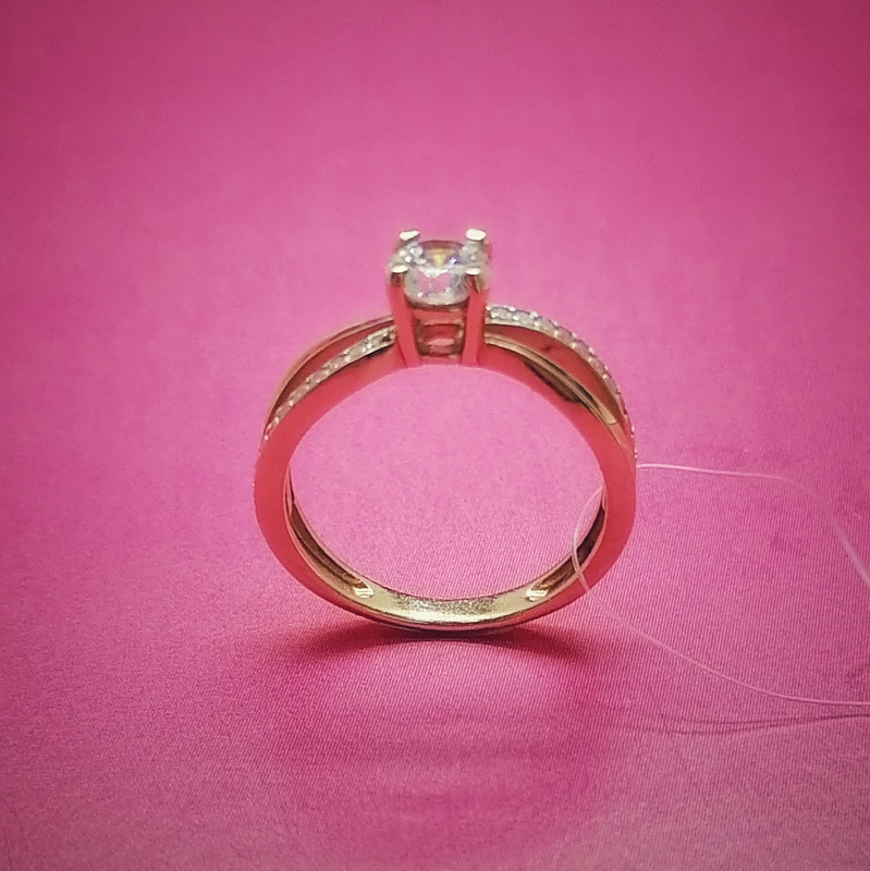 Изумительное кольцо выполнено красного золота 585 пробы. Инкрустировано яркими фианитами, которые переливаются на солнце. На руке смотрится достойно, шикарно и очень стильно. С лёгкостью дополнит любой образ своей обладательницы. Размеры на заказ.