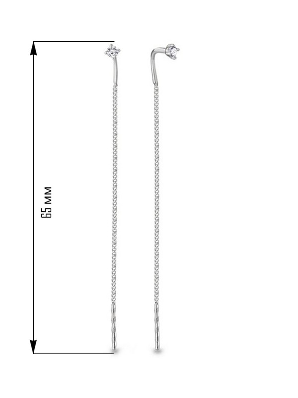 Серьги-протяжки с миниатюрными фианитами, длина 65 мм — нежный штрих к вашему образу