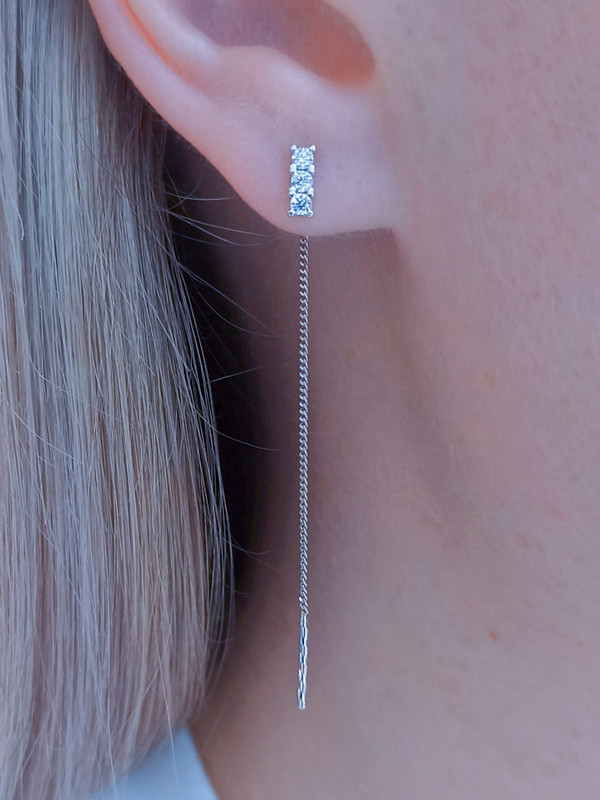 Элегантные серьги-протяжки выполнены из серебра 925 пробы и украшены вставками сияющих фианитов. Благодаря своему лаконичному дизайну, они идеально подойдут как для повседневной носки, так и для особых случаев. Легкие, изящные и удобные в носке, эти серьги подчеркнут вашу утонченность и чувство стиля.