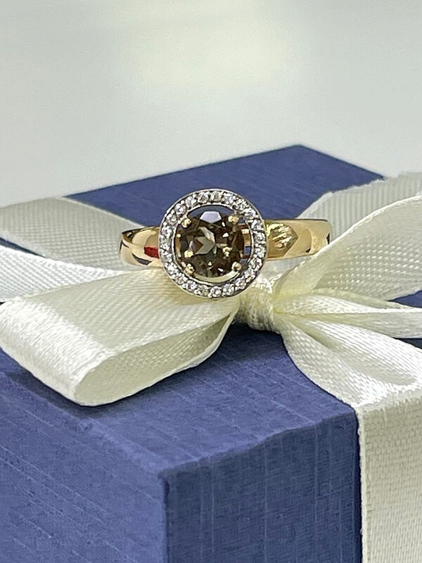 Кольцо украшено натуральным раухтопазом, который придает изделию особенную глубину и насыщенность оттенков. Фианиты добавляют блеска и сверкания, делая каждый момент вашего дня еще более ярким.