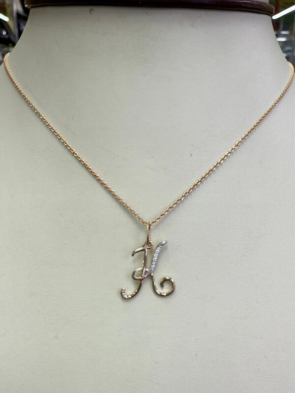 Элегантная подвеска в форме буквы K — изящное сочетание классики и современного дизайна. Выполнена из красного золота, украшена прозрачными фианитами, которые придают изделию утончённое сияние.