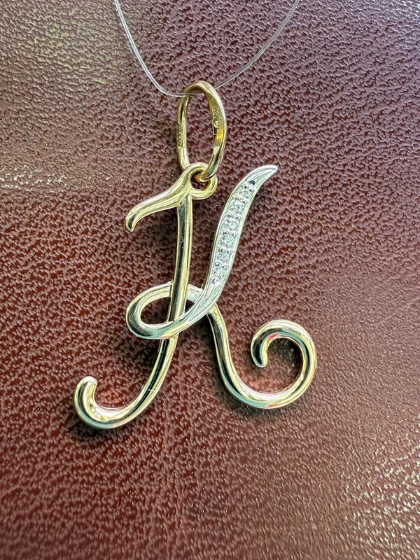 Подвеска золотая буква "К" с фианитами
