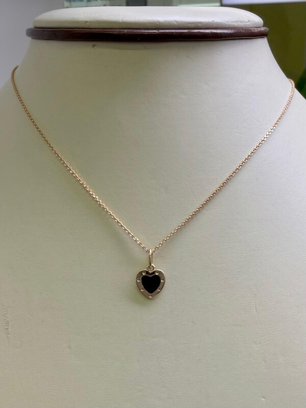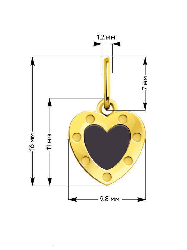 Подвеска сердце из золота с черной эмалью