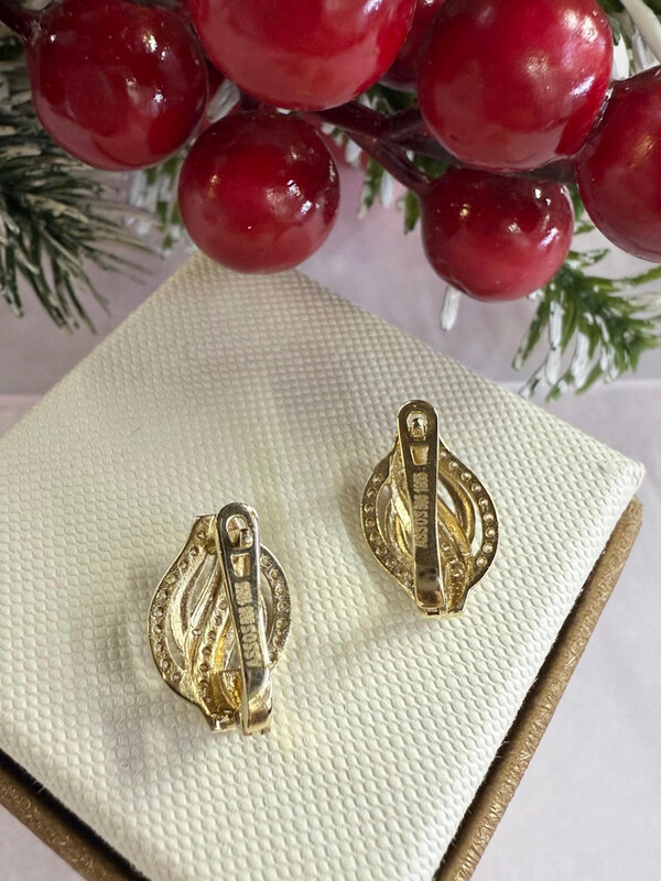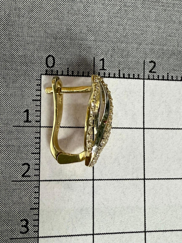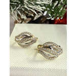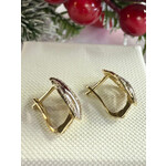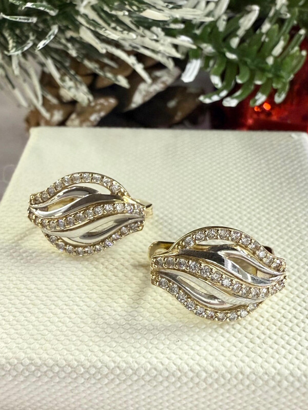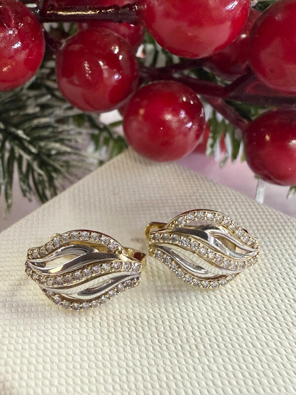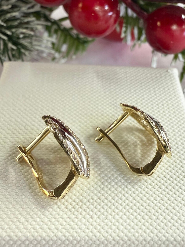 Утонченные серьги выполнены в высокопробном золоте, сочетающем теплоту желтых оттенков и холодный блеск белого металла. Центральные элементы дополнены сверкающими фианитами, создающими игривую переливчатость образа.