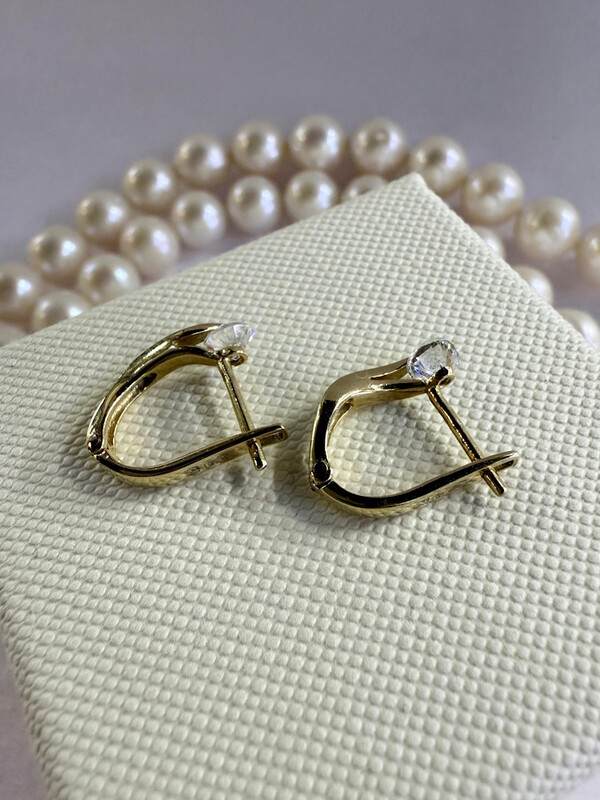 Аккуратные, элегантные серьги выполненные из желтого золота 585 пробы! Серьги имеют английский замок, и украшены двумя крупными сияющими фианитами. Камни закреплены по центру— штифтом, благодаря такому способу крепления фианиты полностью открыты и преломляют все попадающие на них лучи, освежая невероятным блеском свою обладательницу.