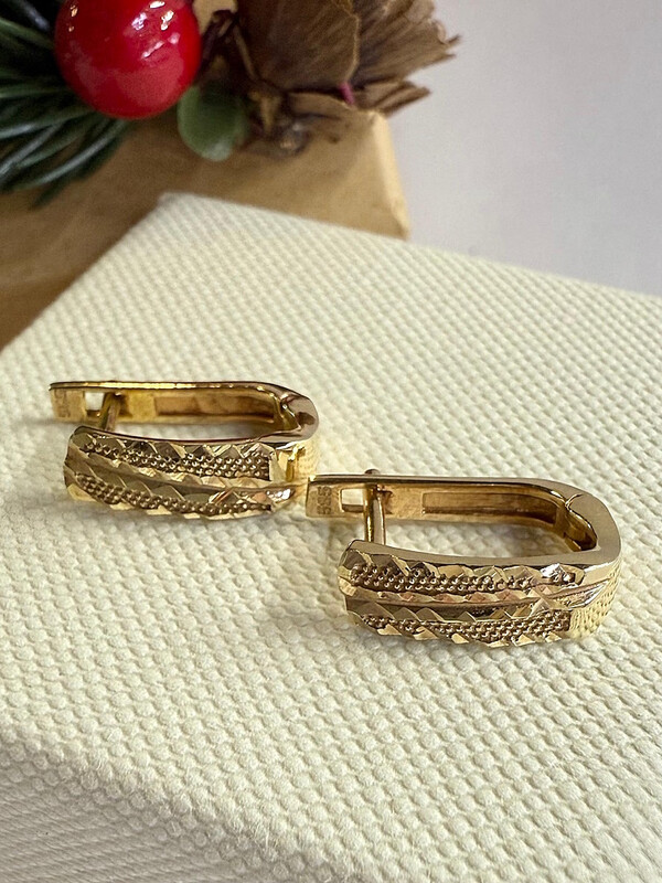 Создайте гармоничный образ с этими стильными серьгами, выполнеными из качественного желтого золота высшей пробы. Дизайн без вставок подчеркнет ваши естественные черты лица и станет универсальным акцентом для любого повода.