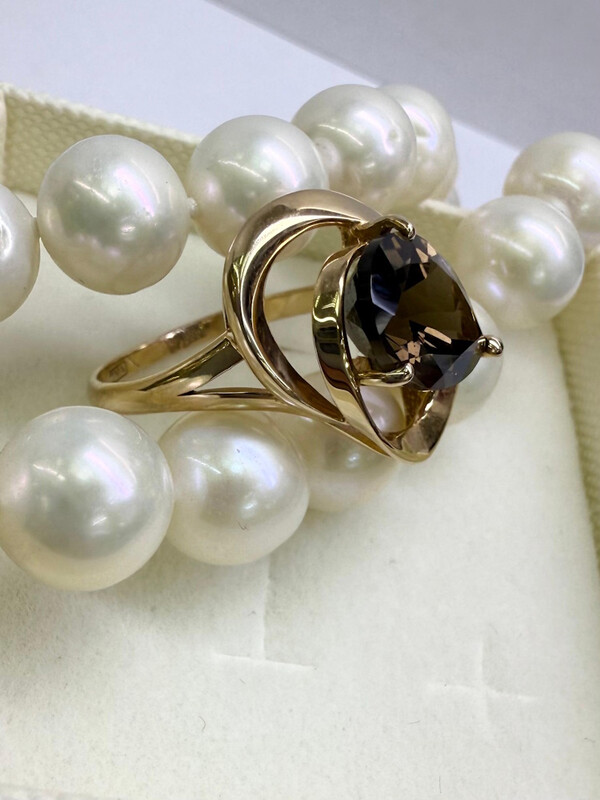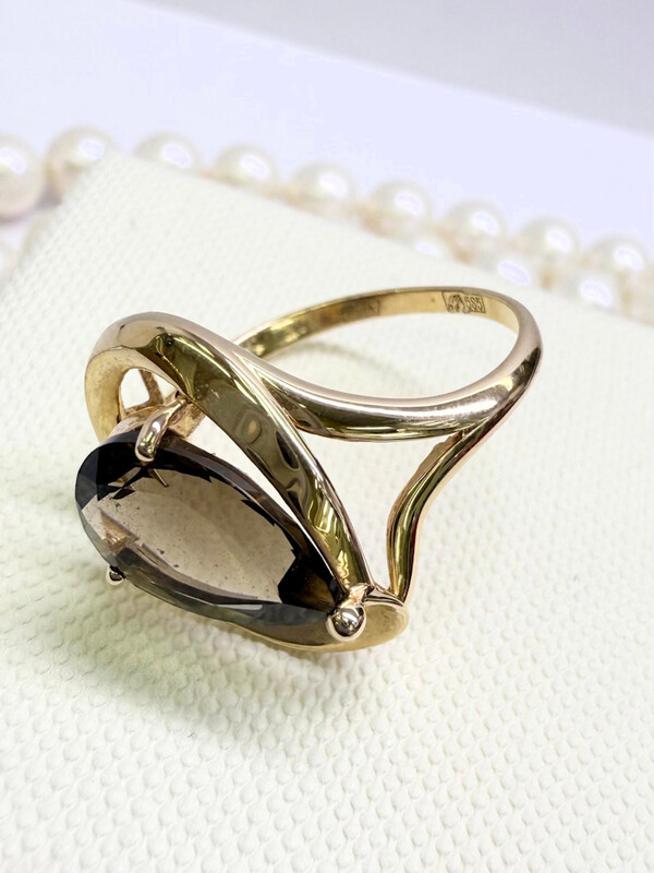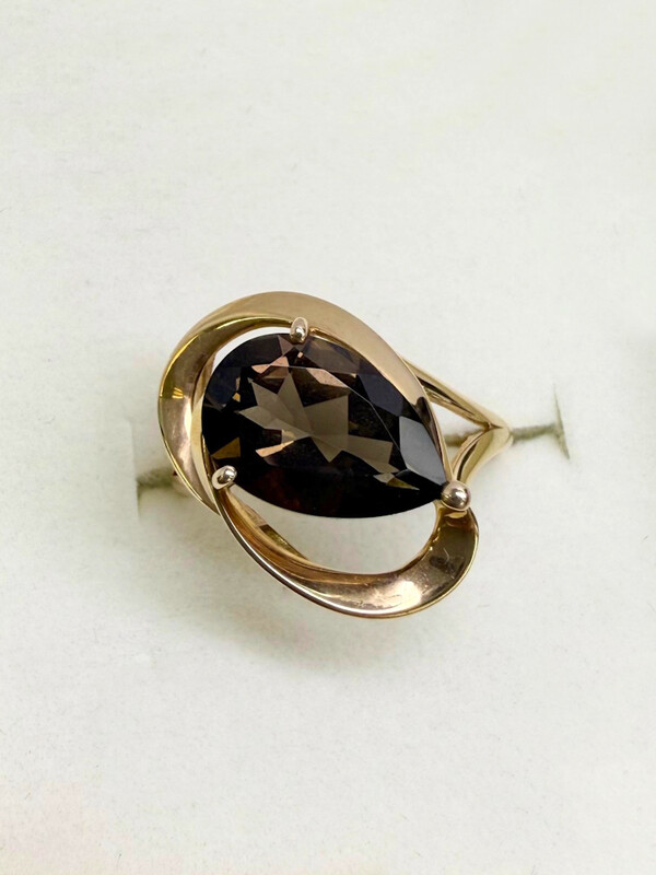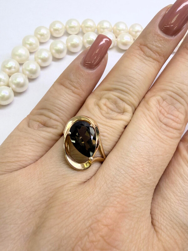 Кольцо женское с крупным раухтопазом