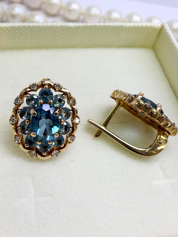 - Элегантный дизайн — овальная форма и сочетание натурального голубого топаза с блестящими фианитами создают неповторимый образ.