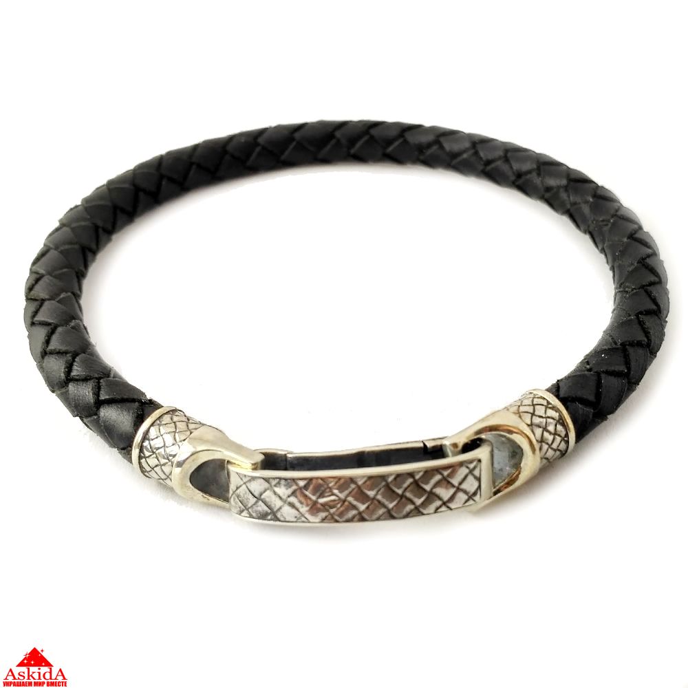 Браслет с круглой вставкой ДЕРЕВО ЖИЗНИ, кожа с серебром